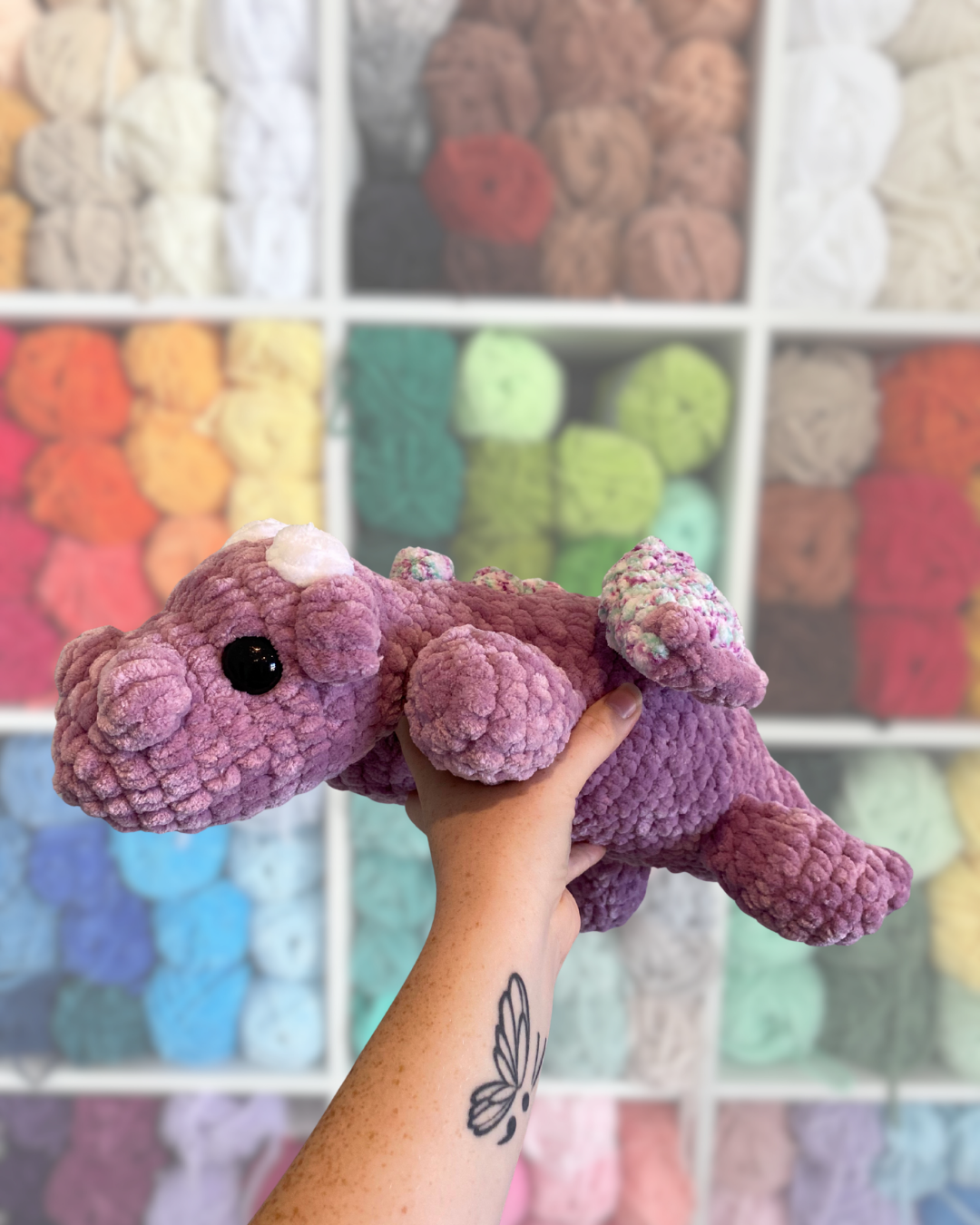 This jumbo dragon is made using 100% polyester yarn and stuffed with premium polyester stuffing.
