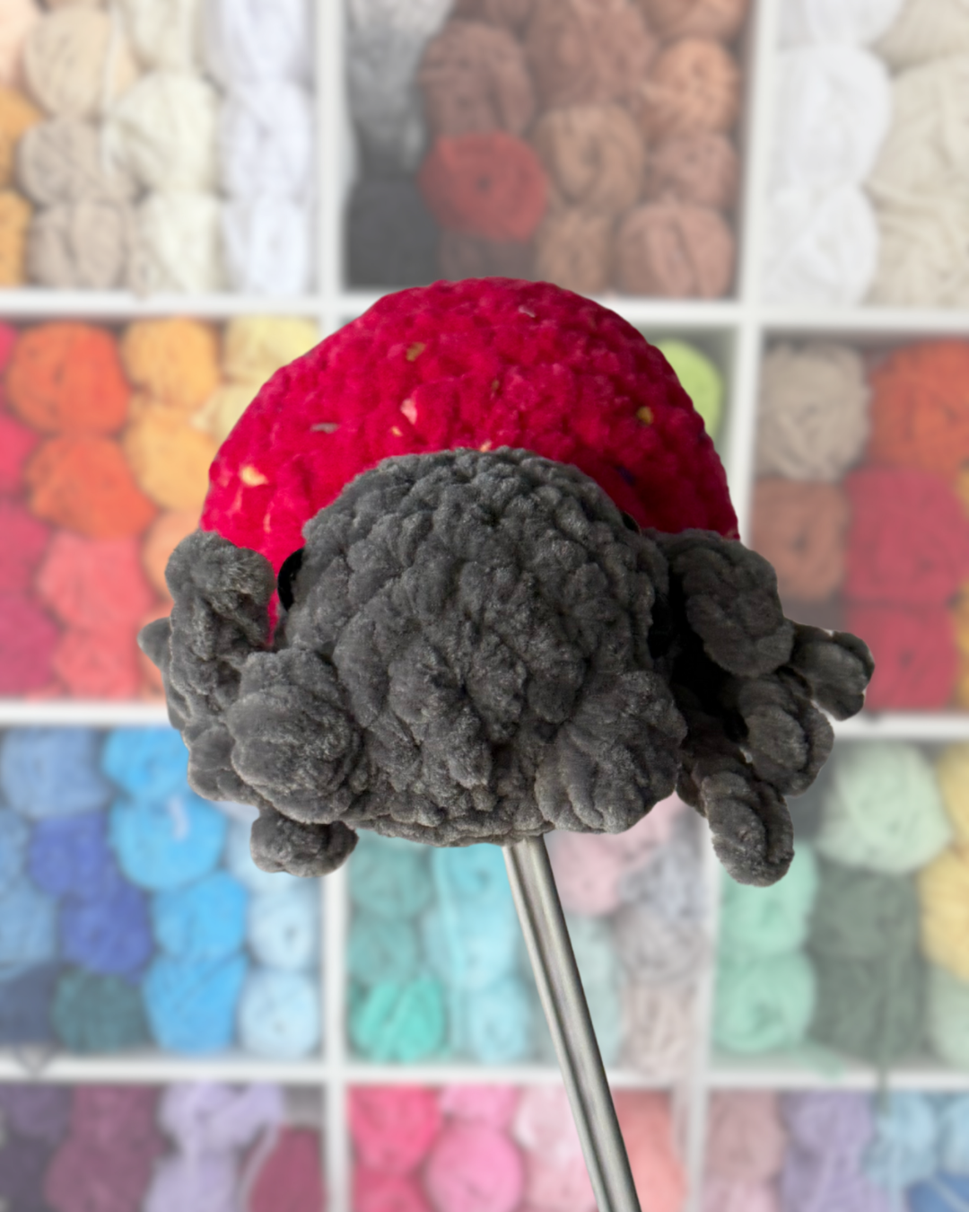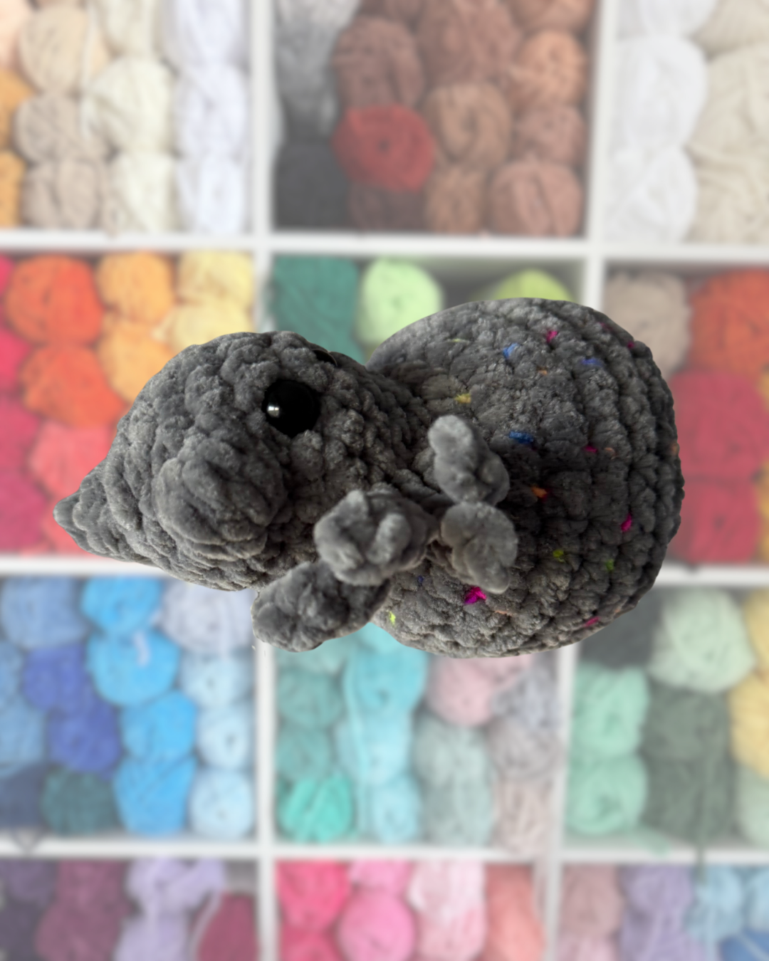 This plushie is made using safety eyes and although secured tightly with a washer may pose a choking hazard for small children.